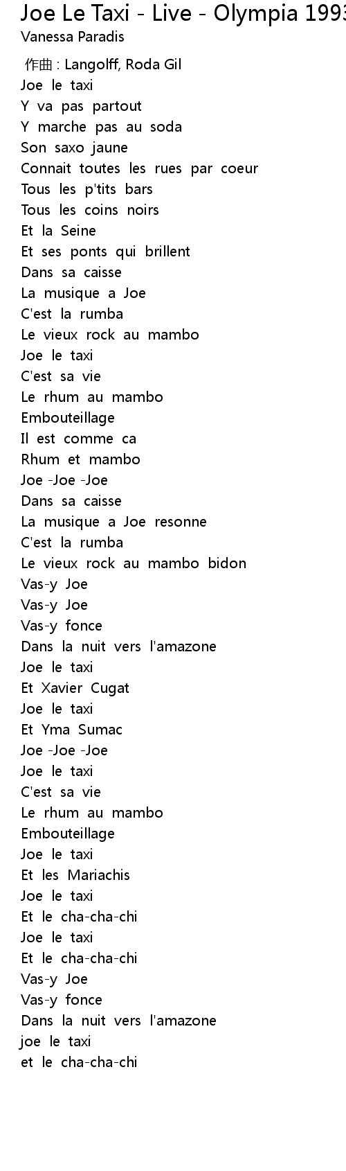 | Song | Joe Le Taxi - Live - Olympia 1993 |