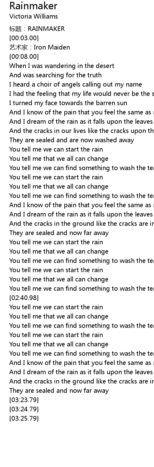 | [03:01.66] | You tell me we can find something to wash the tears..... |