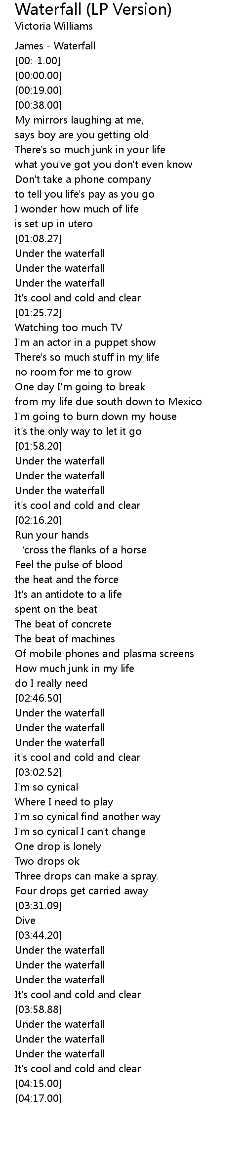 | [01:18.75] | Under the waterfall |