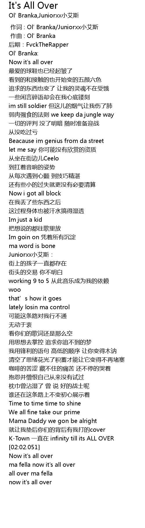 | [00:00.000] | 作词 : Ol' Branka/Juniorxx小艾斯 |