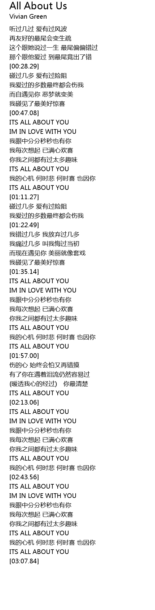 | [00:47.58] | ITS ALL ABOUT YOU |