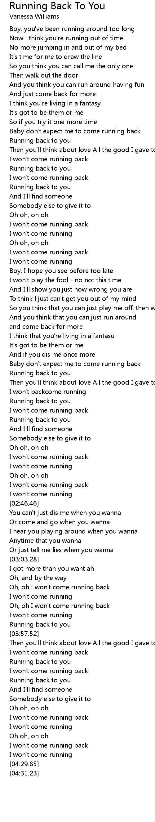 Oh, oh I won't come running back |
