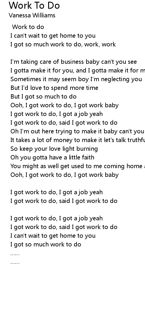 | Ooh, I got work to do, I got work baby | |