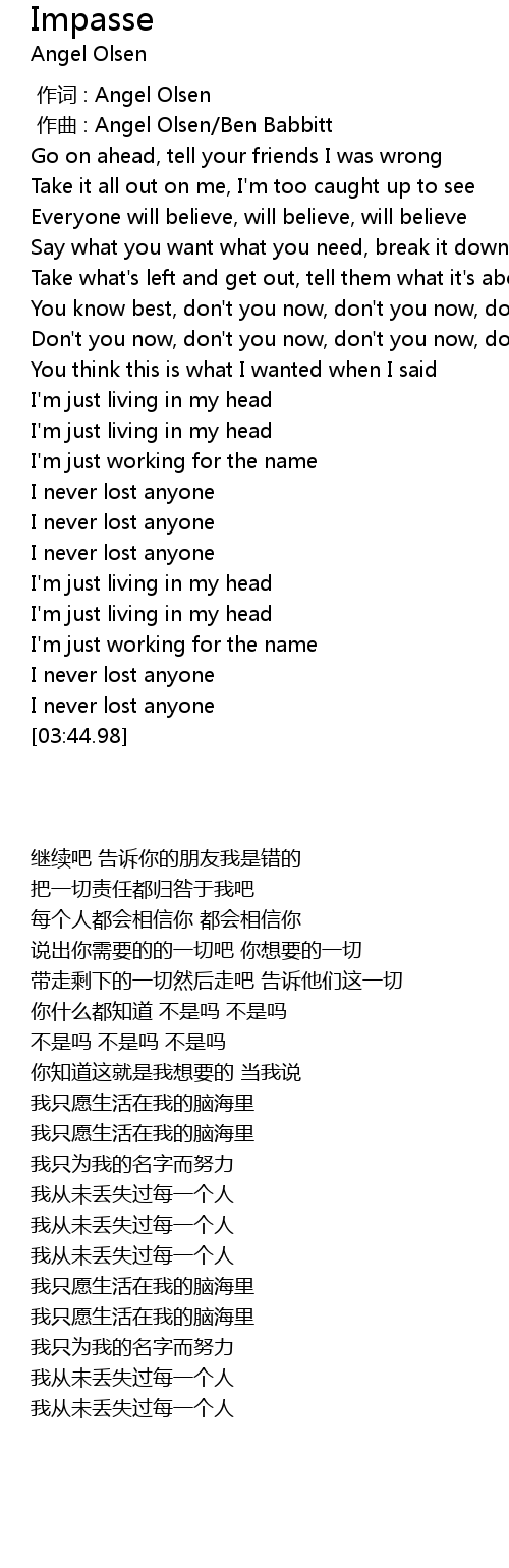 | [00:00.00] | 作词 : Angel Olsen |