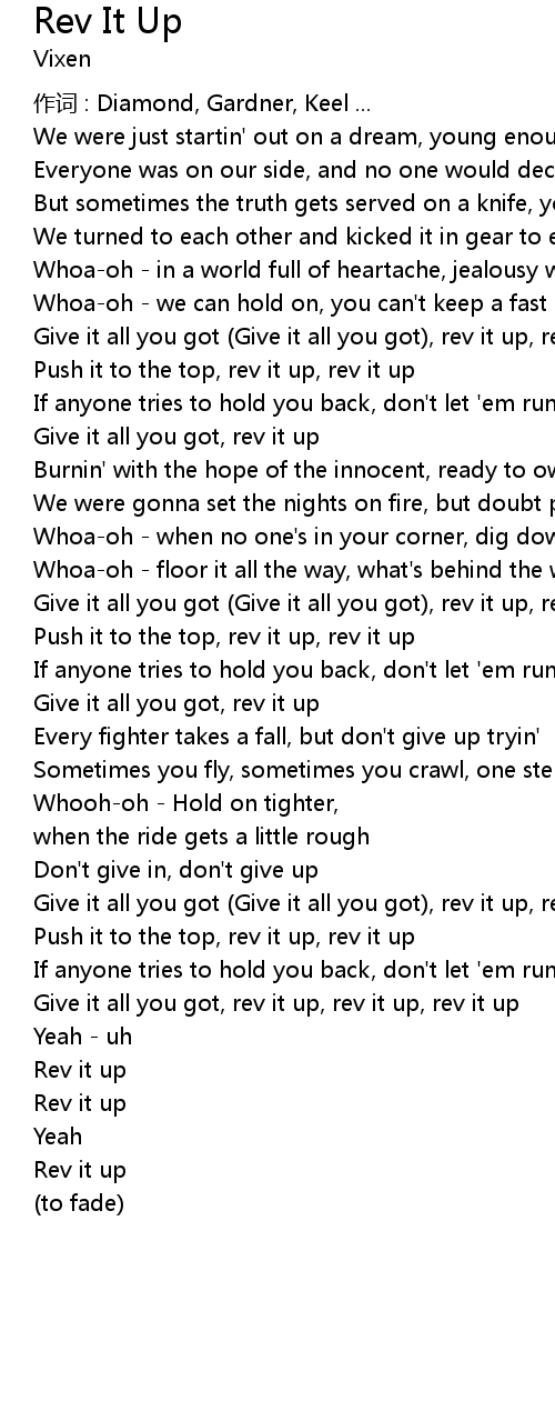 | Give it all you got, rev it up, rev it up, rev it up | |