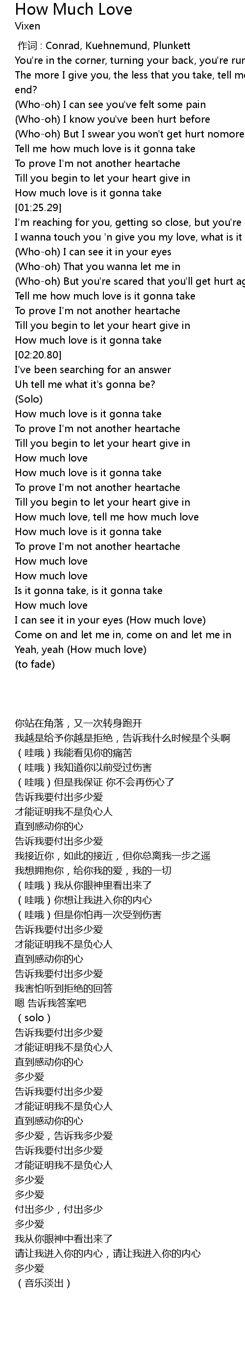 | [04:09.76] | I can see it in your eyes (How much love) |