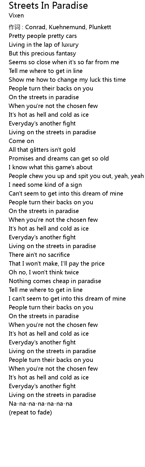 | Song | Streets In Paradise |