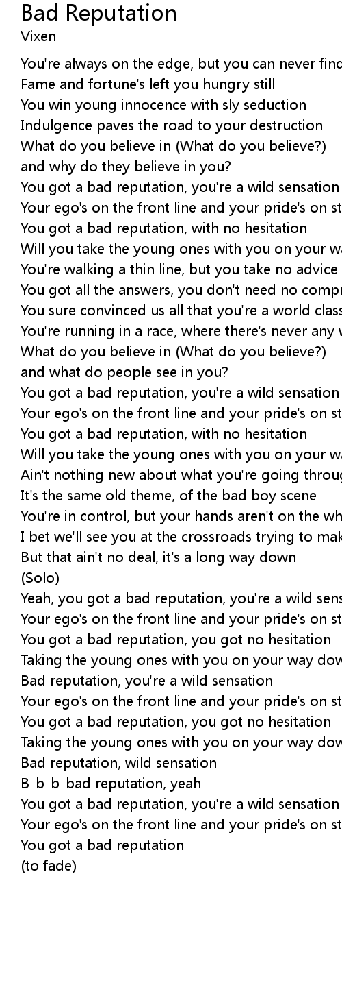B-b-b-bad reputation, yeah |