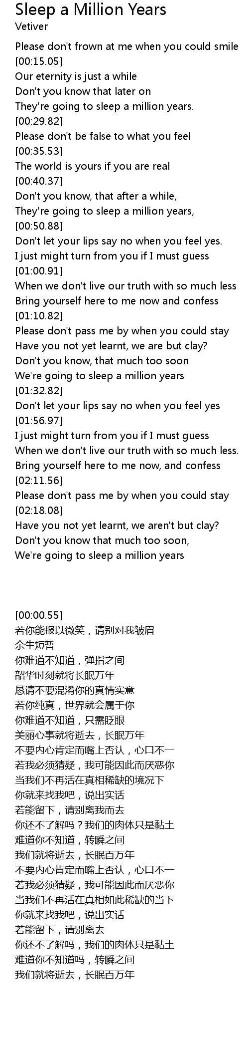 We're going to sleep a million years |