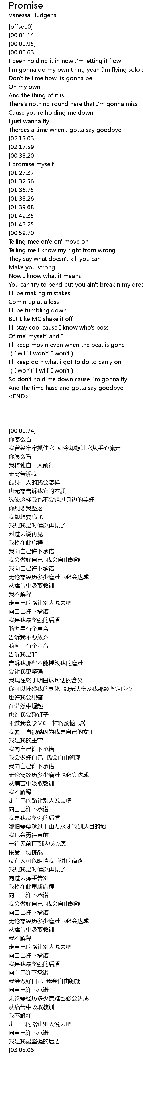 | [00:49.37][01:42.35][02:35.56][02:56.77] | Promise myself |