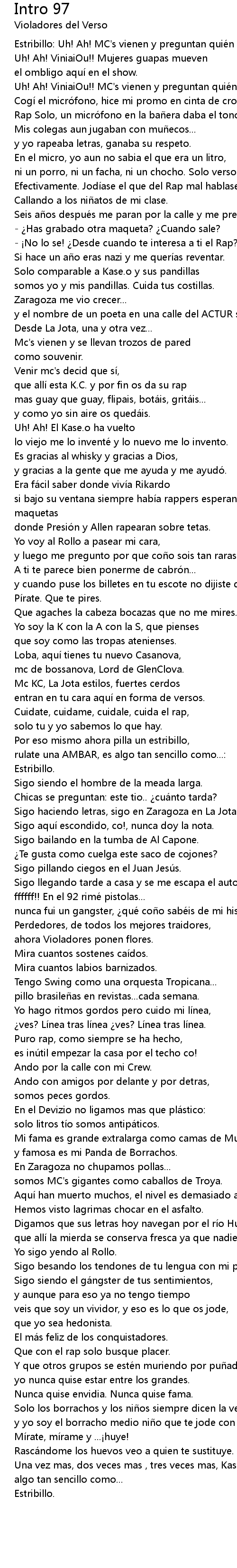 | Estribillo: Uh! Ah! MC's vienen y preguntan quién es Kase.O. | |