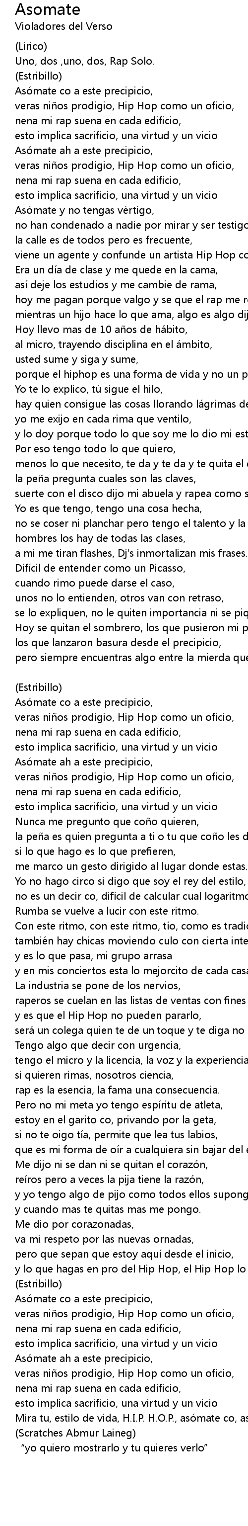 | Mira tu, estilo de vida, H.I.P. H.O.P., asómate co, asómate. | |