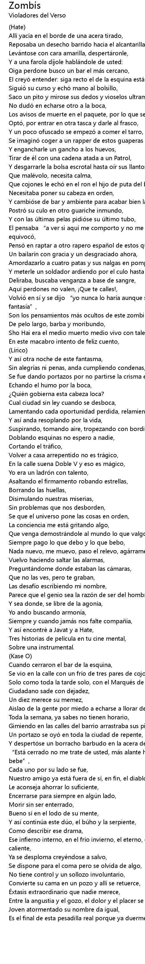 | Artist | Violadores del Verso |