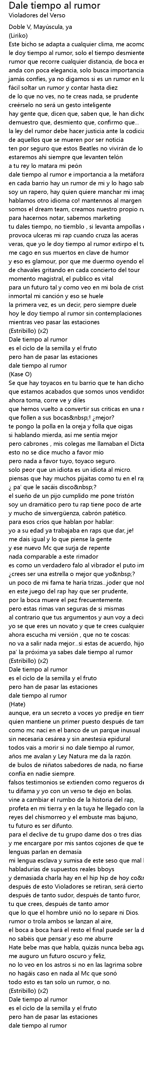 | todos vais a morir si no dale tiempo al rumor, | |