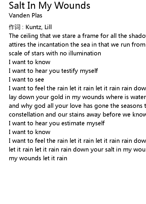 | I want to feel the rain let it rain let it rain rain down your salt in my wounds let it rain let it rain rain down your salt in my wounds lay down your salt in my wounds let it rain |