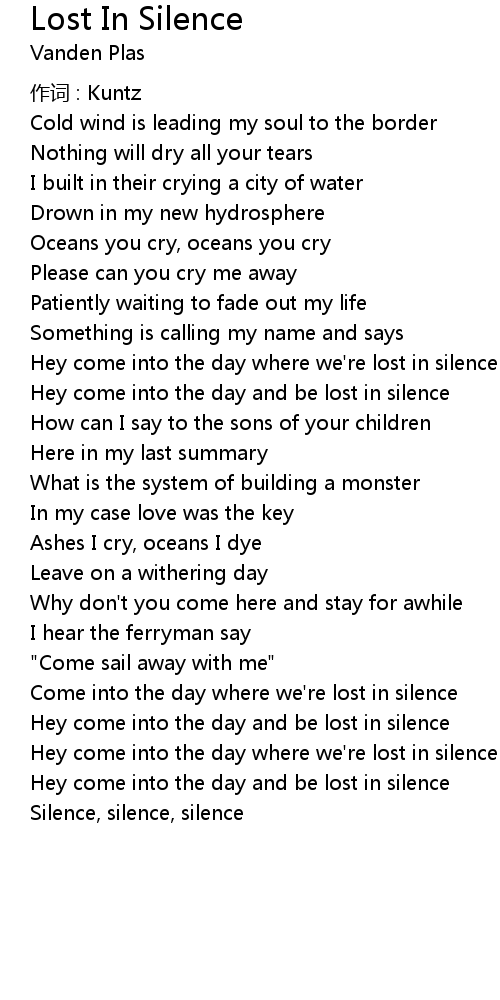 | Hey come into the day where we' re lost in silence | |