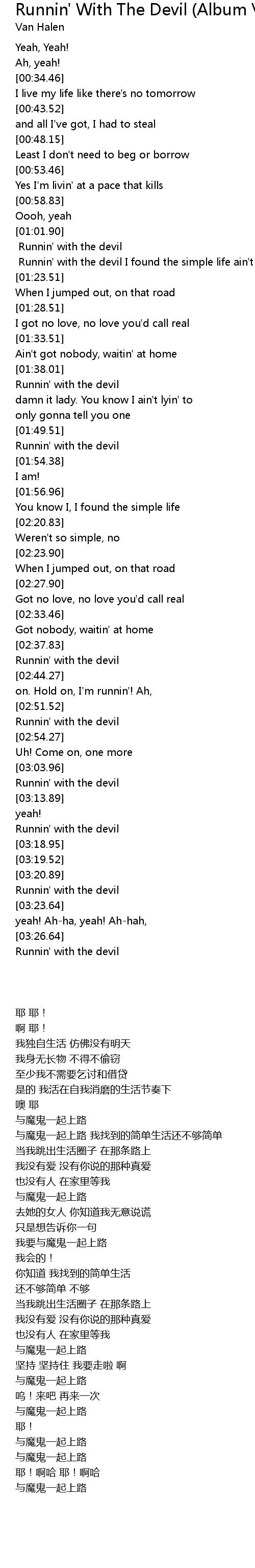 | [03:22.33] | Runnin' with the devil |