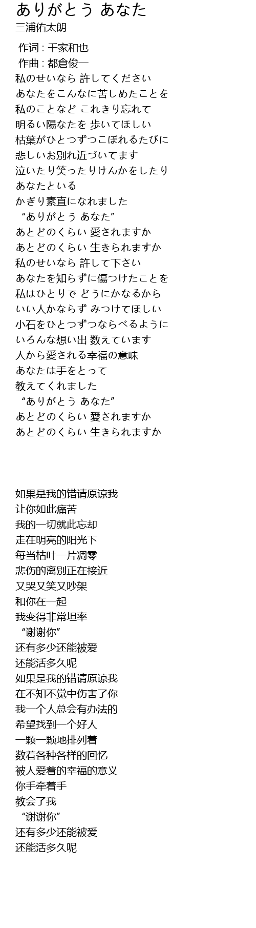 “ありがとう あなた” |