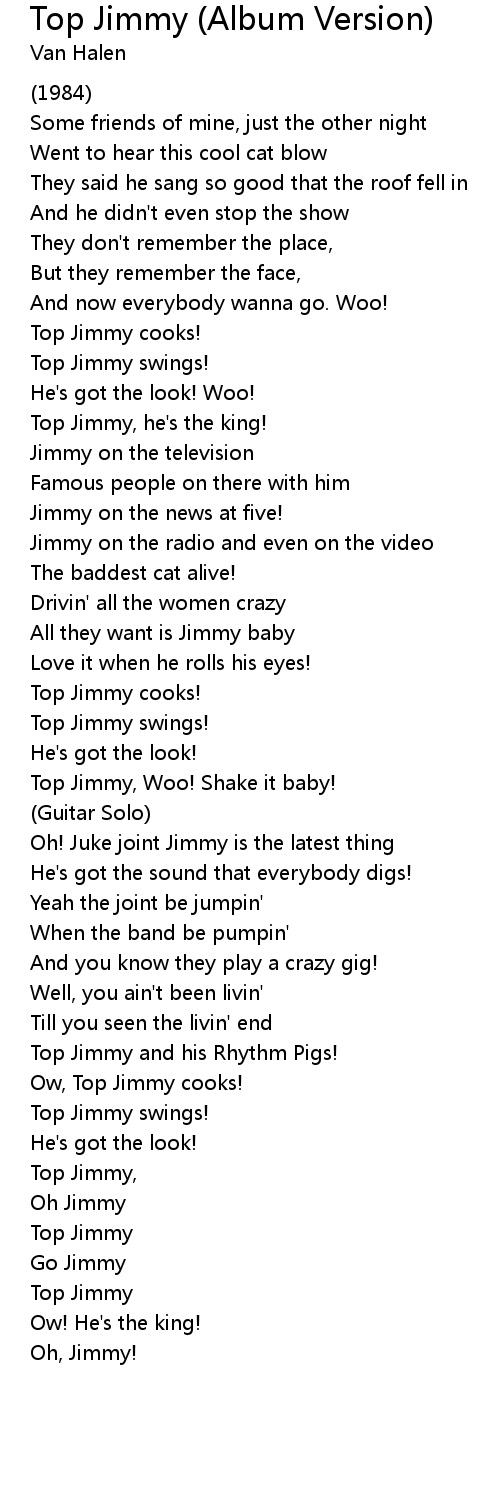 | [01:45.69] | Top Jimmy, Woo! Shake it baby! |