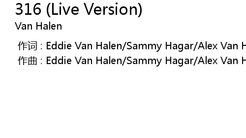 | [00:00.000] | zuo ci : Eddie Van Halen Sammy Hagar Alex Van Halen Michael Anthony |