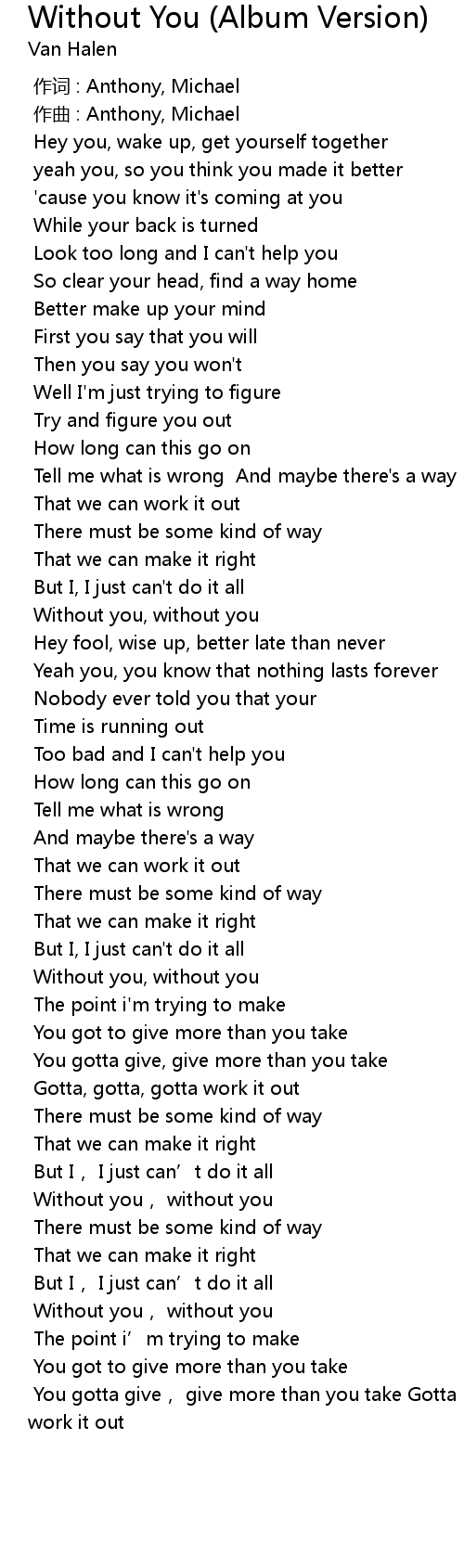 | [04:34.92] | Without you, without you |