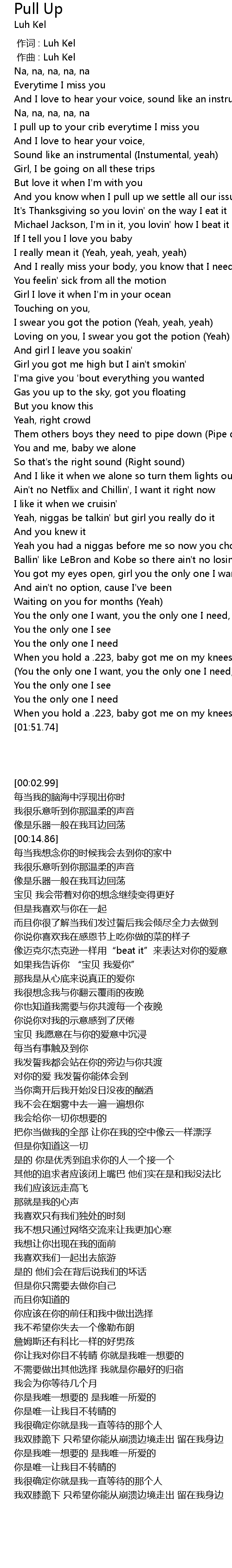 | [00:00.00] | 作词 : Luh Kel |