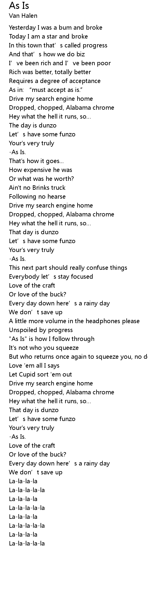 | " As Is" is how I follow through | |