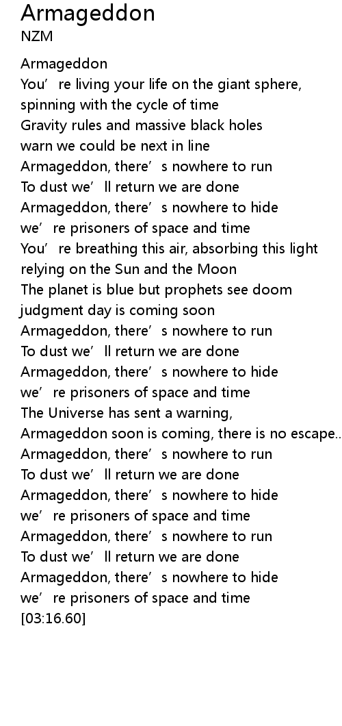| [00:52.63] | Armageddon, there' s nowhere to run |