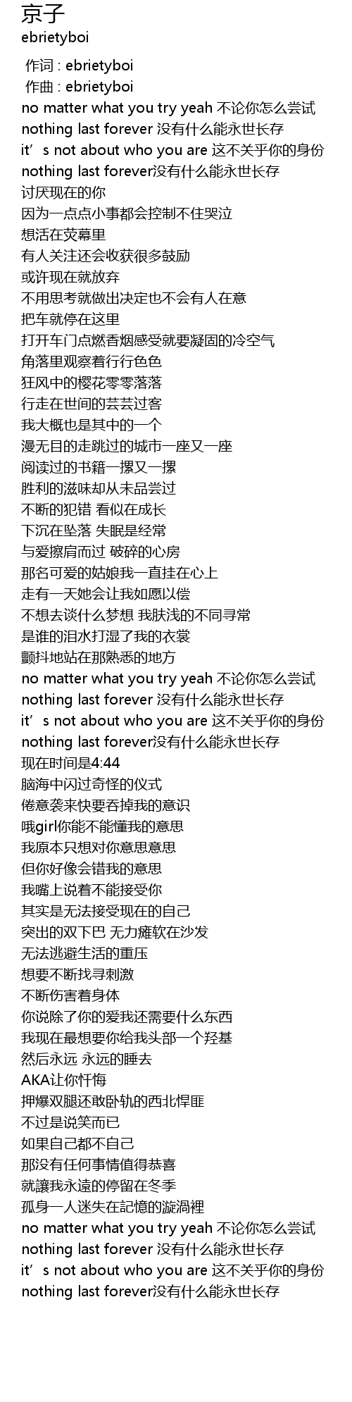 | [01:35.917] | nothing last forever mei you shen me neng yong shi chang cun |