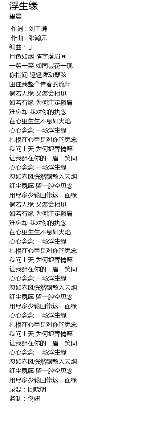 | [01:08.79] | 心心念念 一场浮生缘 |
