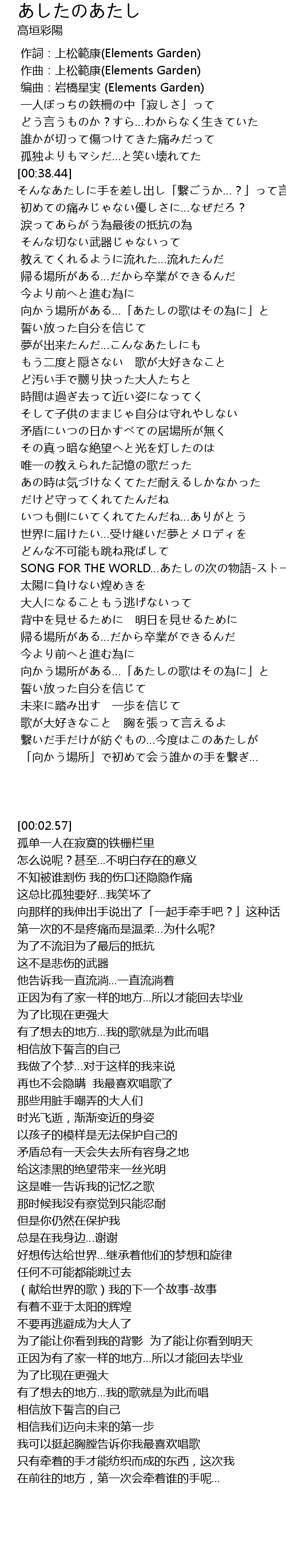 | [00:02.57] | 作詞:上松範康(Elements Garden) |