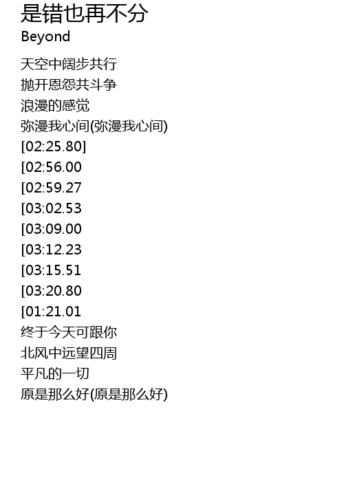 | [03:34.98][03:09.00][02:10.50][01:05.49] | 是错也再不分 |