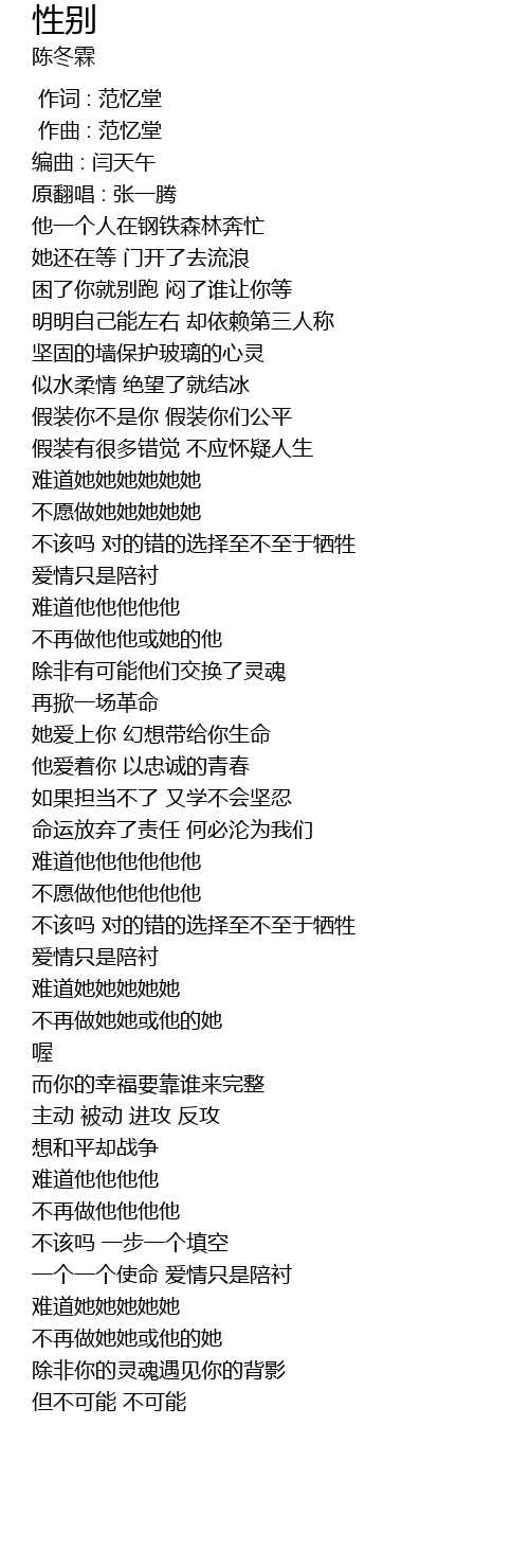 | [03:19.11] | 不再做她她或他的她 |