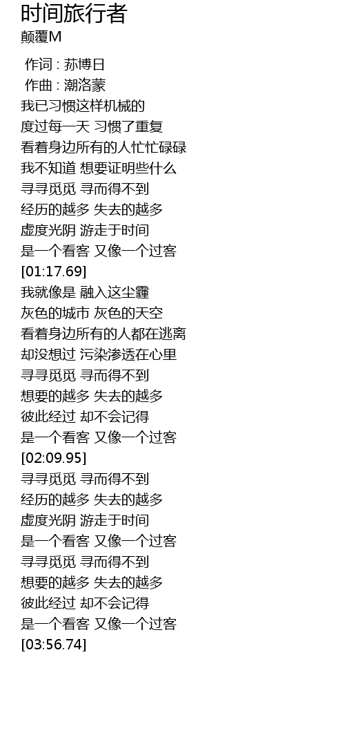 | [01:05.68] | 虚度光阴 游走于时间 |