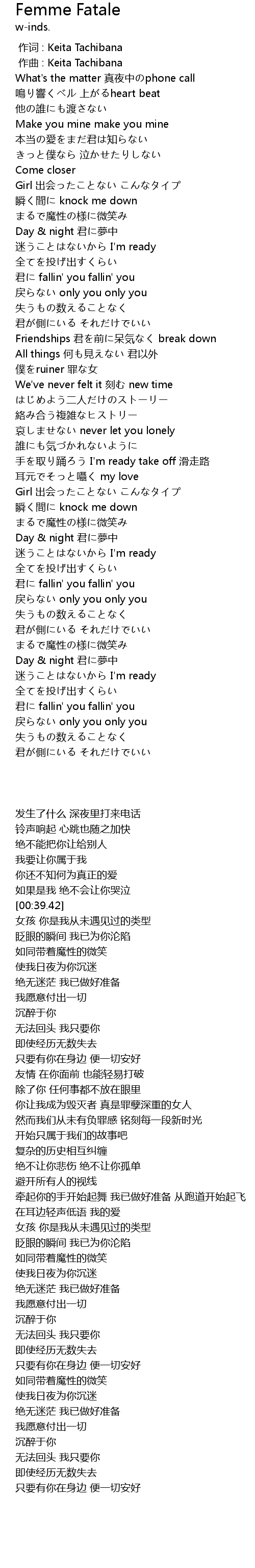 | [00:00.00] | zuò cí : Keita Tachibana |