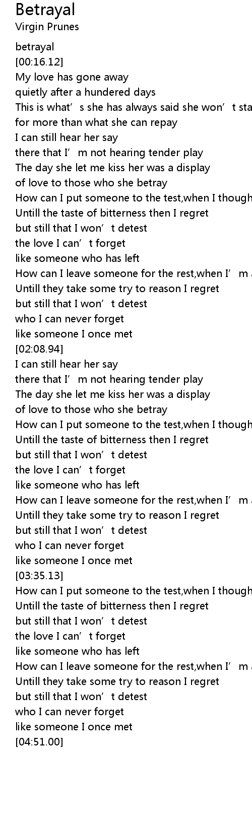 | [00:08.40] | betrayal |