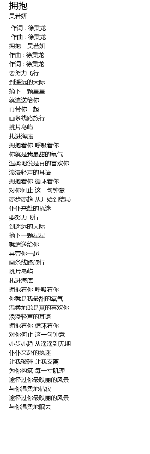 | [00:02.710] | 拥抱 - 吴若妍 |