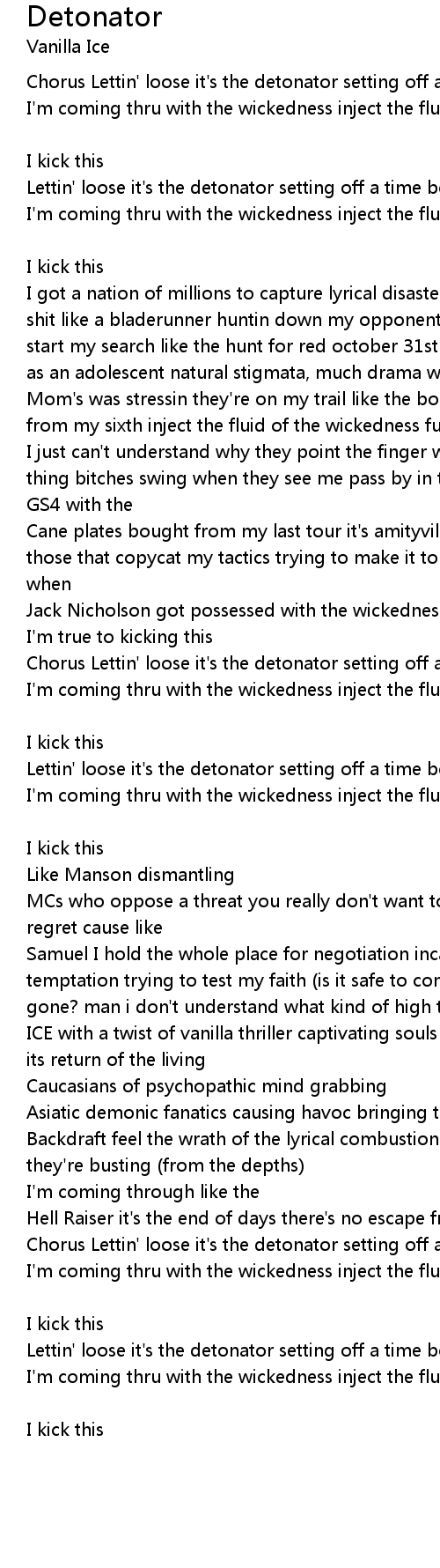 Chorus Lettin' loose it's the detonator setting off a time bomb, ring the alarm |