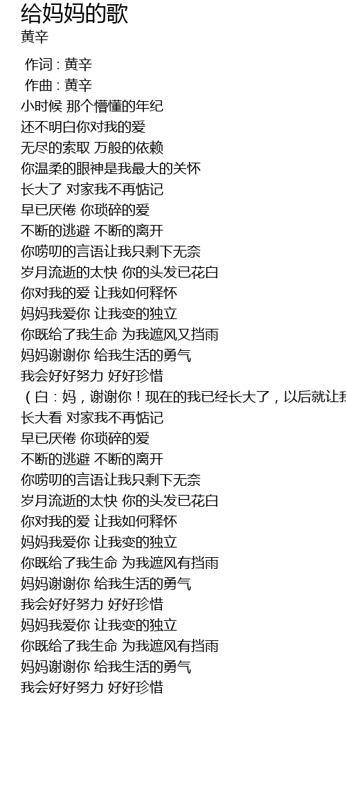 | [03:38.47] | 妈妈我爱你 让我变的独立 |