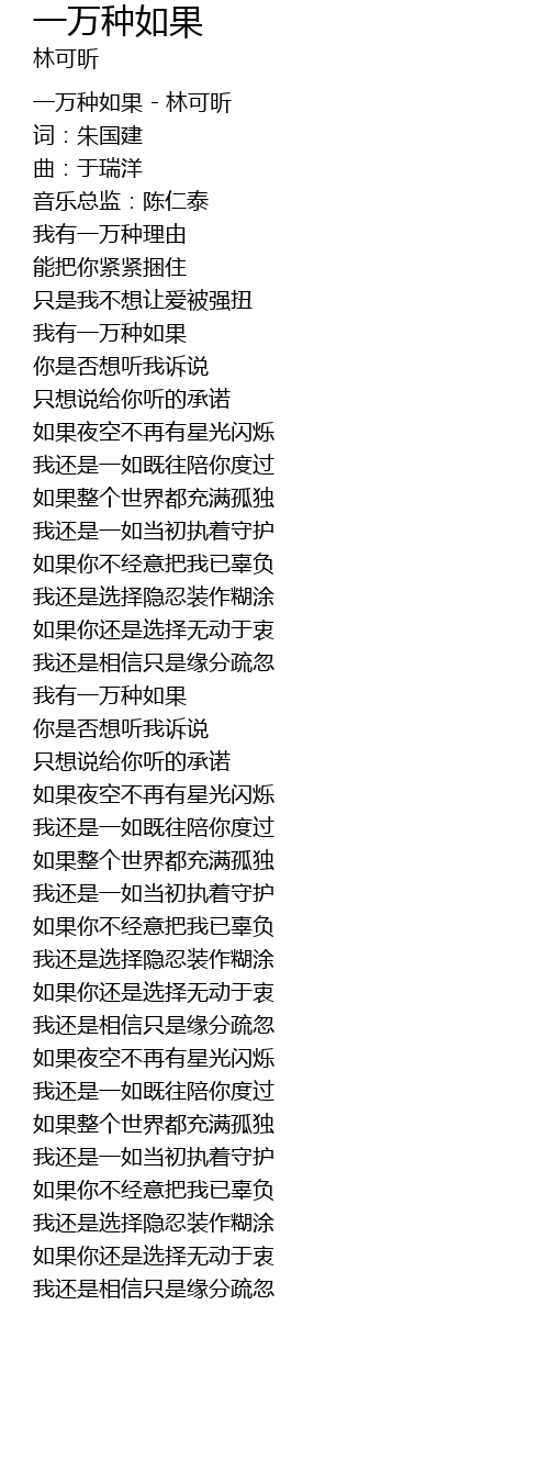 | [00:00.73] | 一万种如果 - 林可昕 |