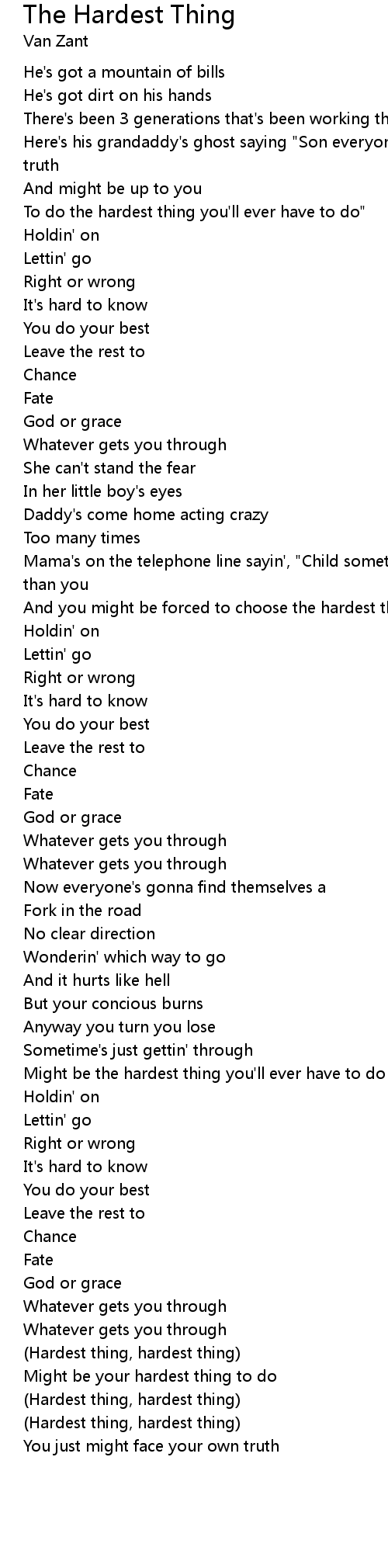 And you might be forced to choose the hardest thing you'll ever have to do" |