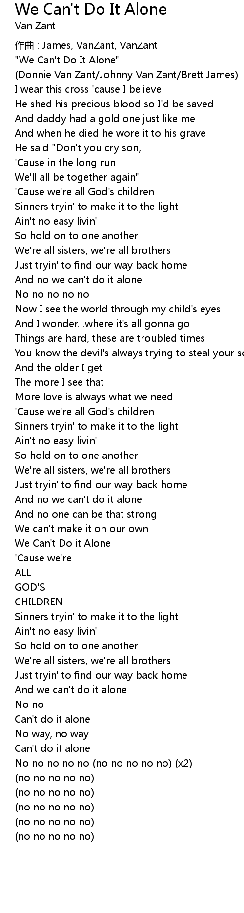 | We Can' t Do it Alone | |
