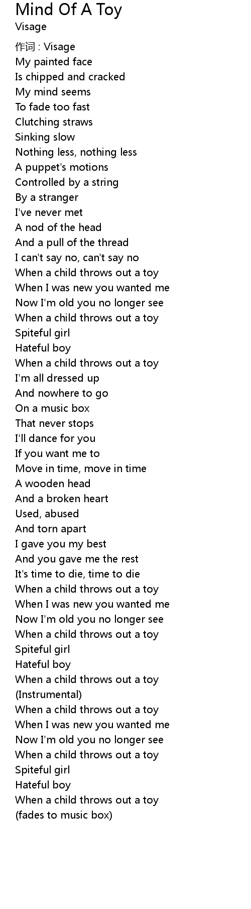 | Song | Mind Of A Toy |