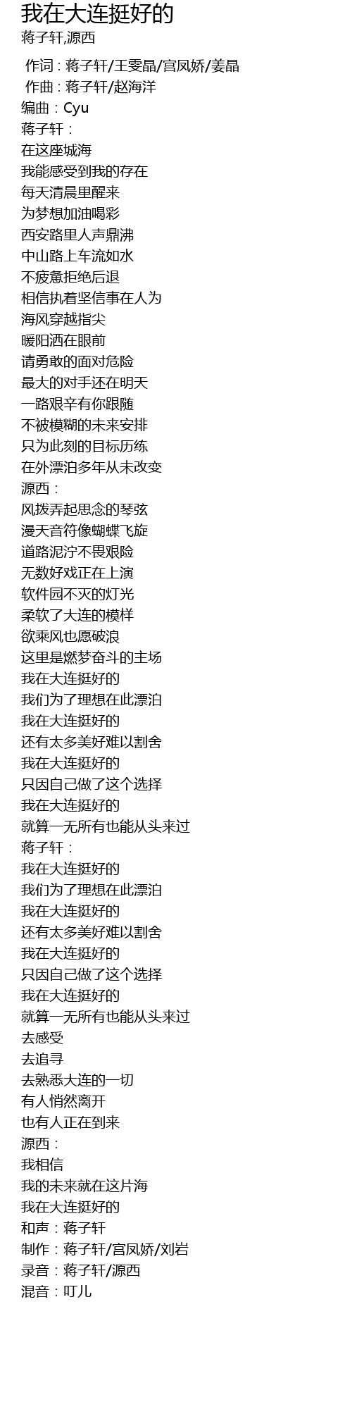 | [02:42.65] | wǒ zài dà lián tǐng hǎo de |