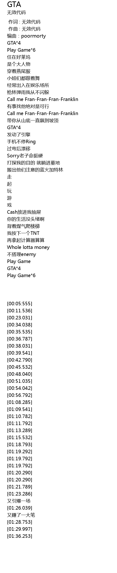 | [00:01.000] | zuò qǔ : wú xiào dài mǎ |