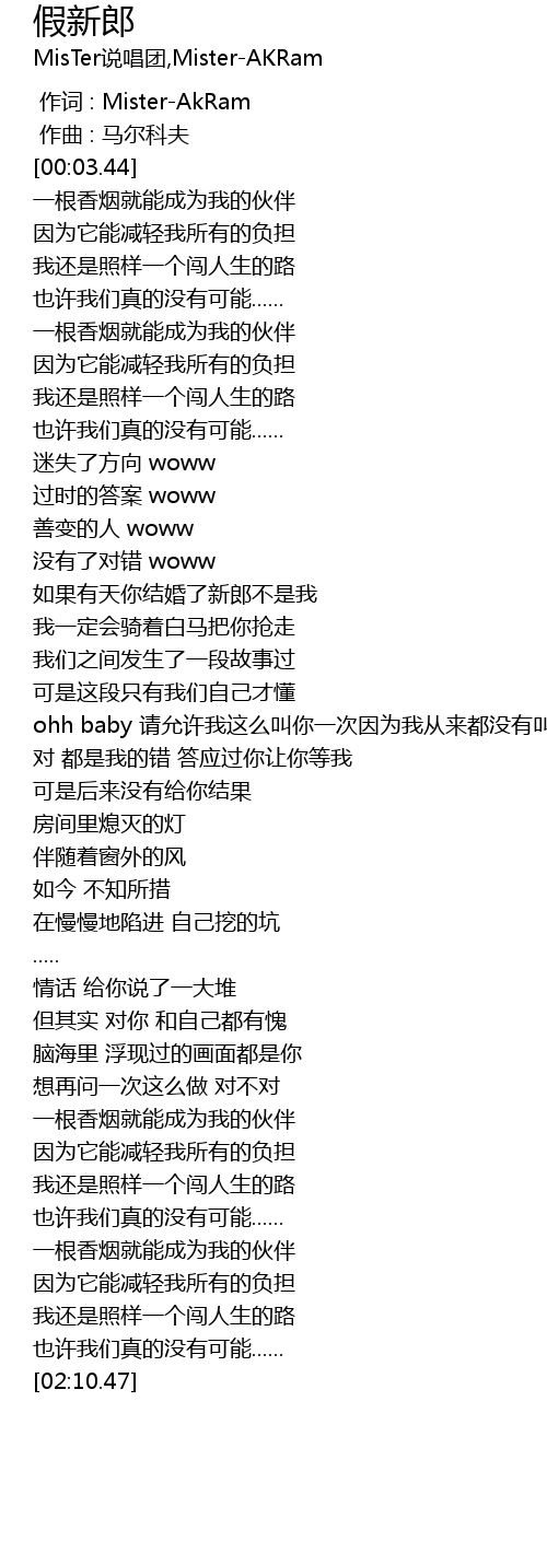 | [01:59.93] | 一根香烟就能成为我的伙伴 |