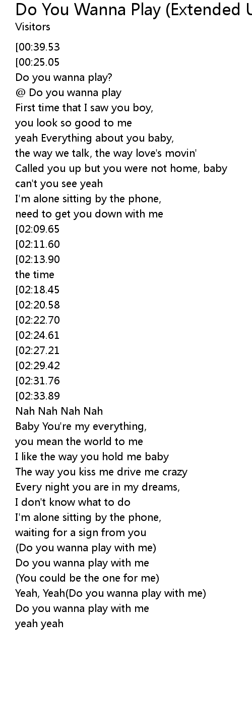 | [03:12.96][02:18.45][01:14.73] | Do you wanna play |