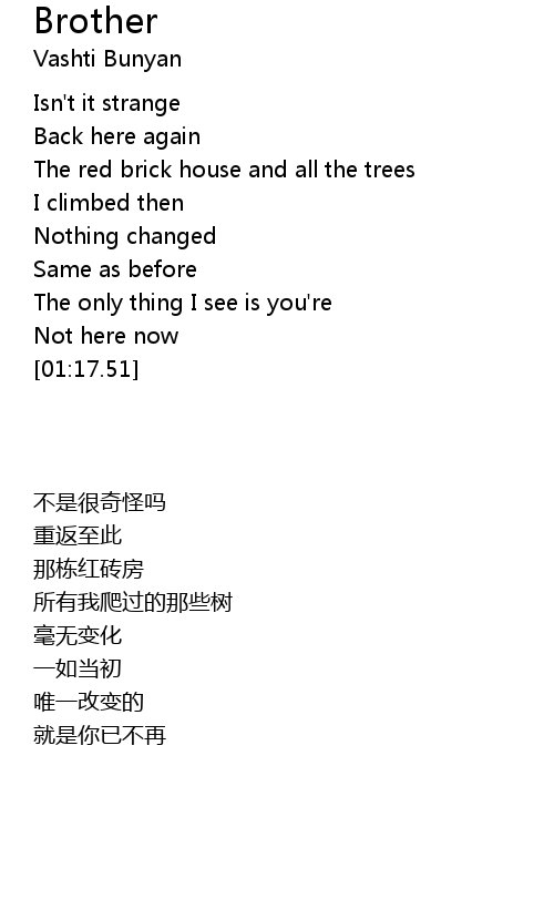 | [00:35.76] | The red brick house and all the trees |