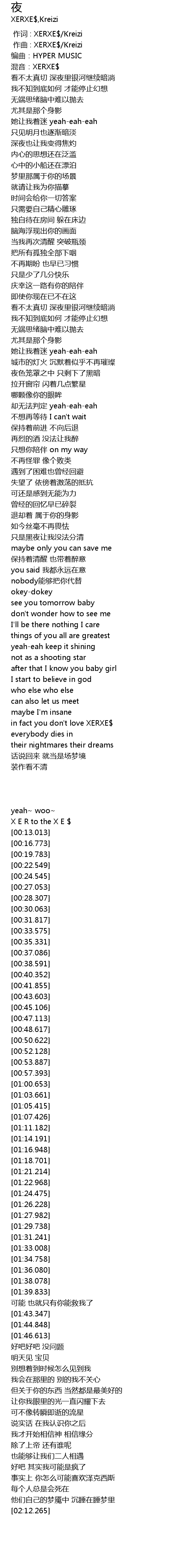 | [00:00.000] | 作词 : XERXE$/Kreizi |