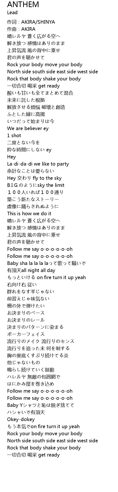 | [02:59.83] | Follow me say ooooooh |